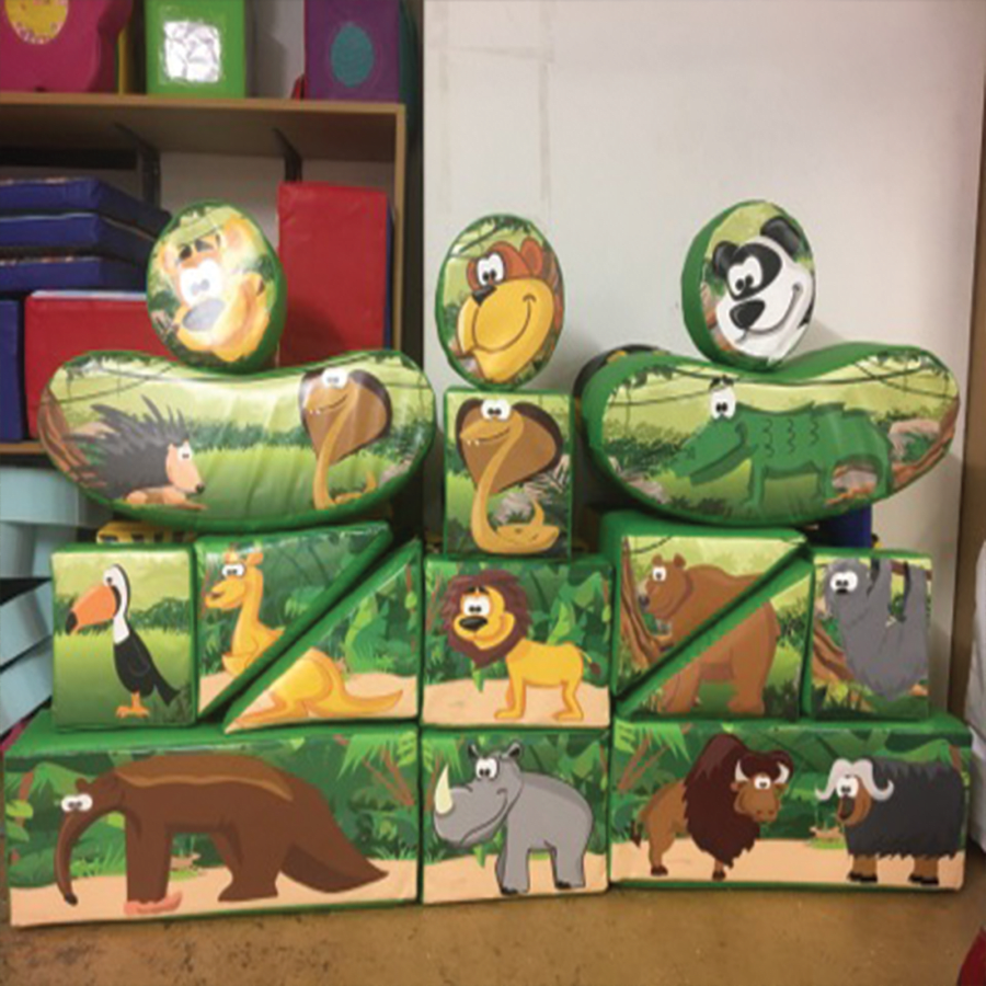 The soft play sets are from our deluxe range, including a 16 piece themed set with matching coloured matting that inter-locks together to form any shape needed for your venue.
