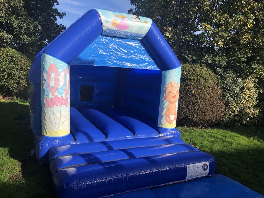 Blue Christening Themed Bouncy Castle available to hire in Bexleyheath, Dartford, Welling, Sidcup, Blackfen, Crayford, Falconwood and all surrounding areas!