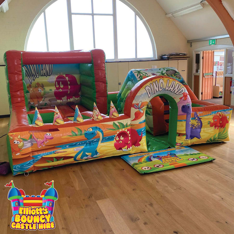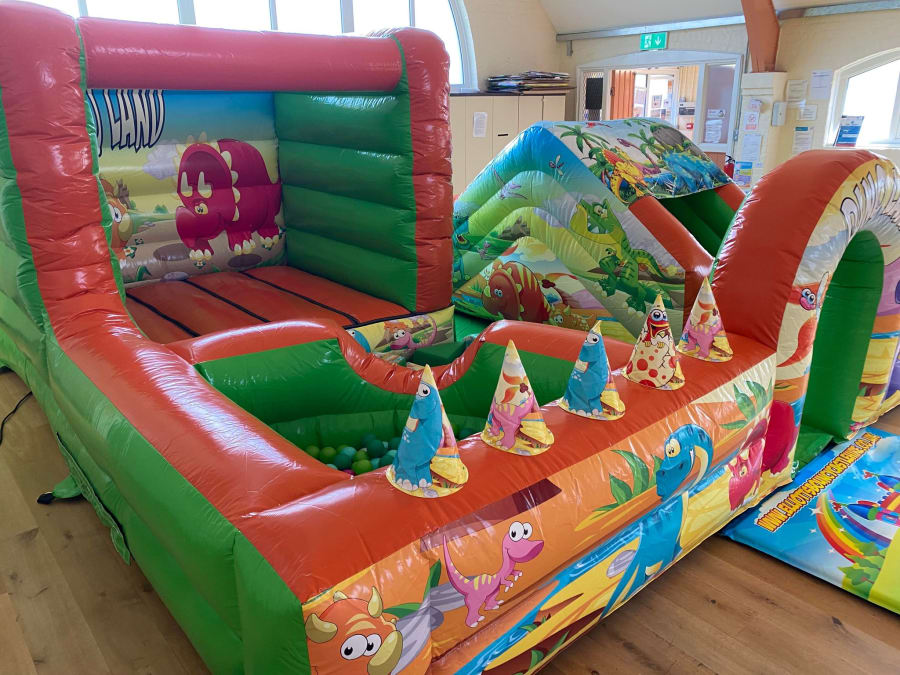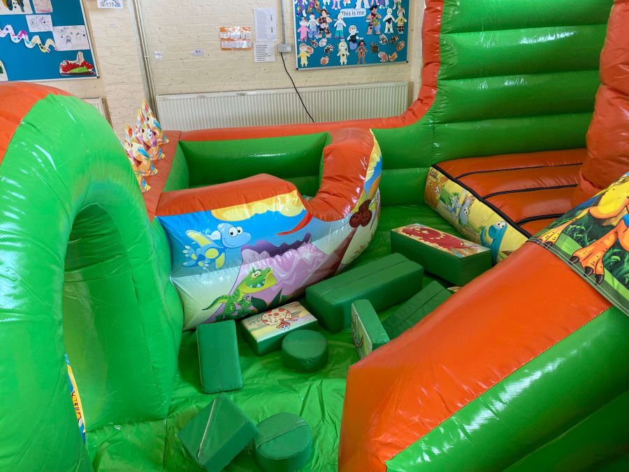 This is a great hire item that includes everything you need! It has it's own bouncy castle, slide and ball pool area! We also include a 17 piece dinosaur soft play set inside the play park so it really is a self contained party in one single piece!