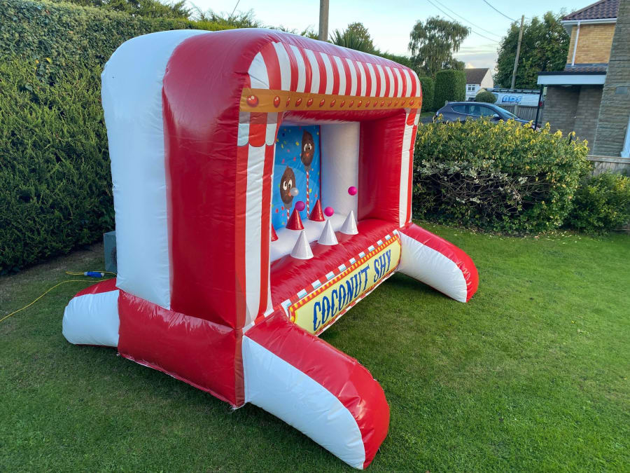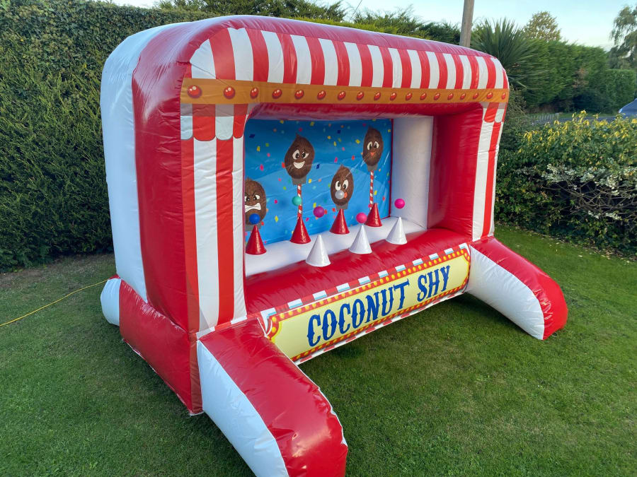 Our inflatable coconut shy is the perfect add-on for parties, fetes and fairs. Extremely affordable and offers a lot of fun without taking up a huge space. It's great at events where you want to introduce some games and fun, a side stall game with all the fun of the fair, without the risk of a home-made look. A very professional item that stands out and attracts people to play, drawing them in to pitch their skill against the classic fun-fair game!