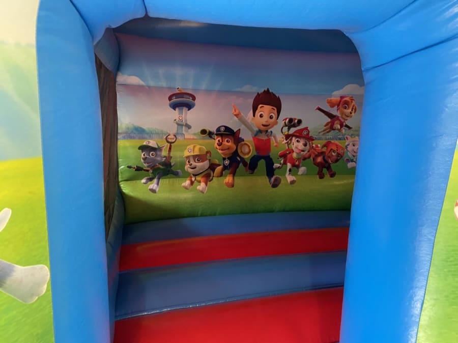 This is a fantastic Paw Patrol bouncy castle for hire. It has a built-in slide (with easy to use steps inside for climbing) and a great bounce area inside.