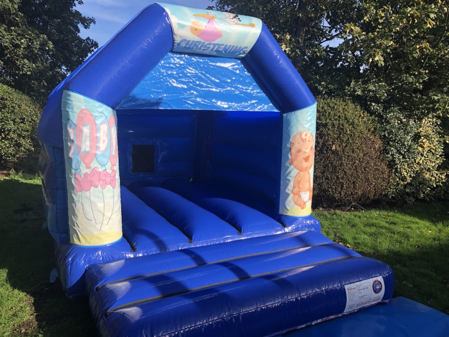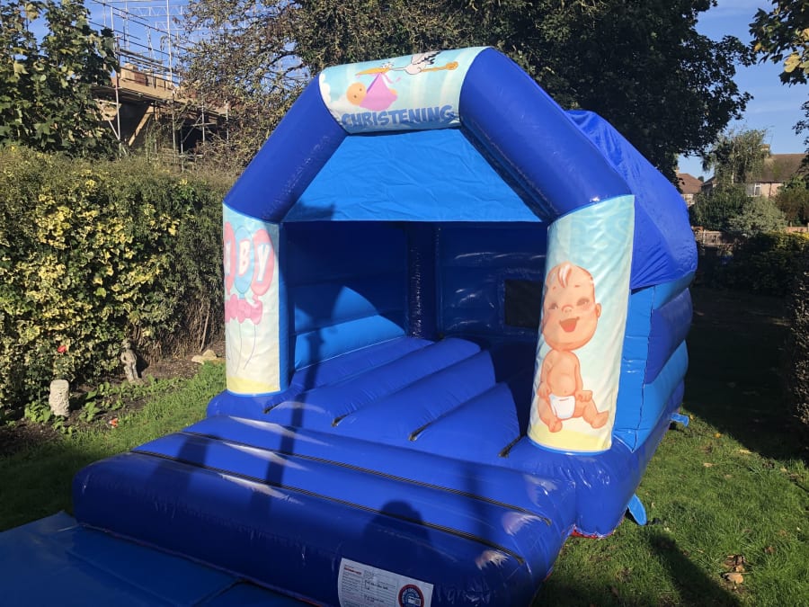 Blue Christening Themed Bouncy Castle available to hire in Bexleyheath, Dartford, Welling, Sidcup, Blackfen, Crayford, Falconwood and all surrounding areas!