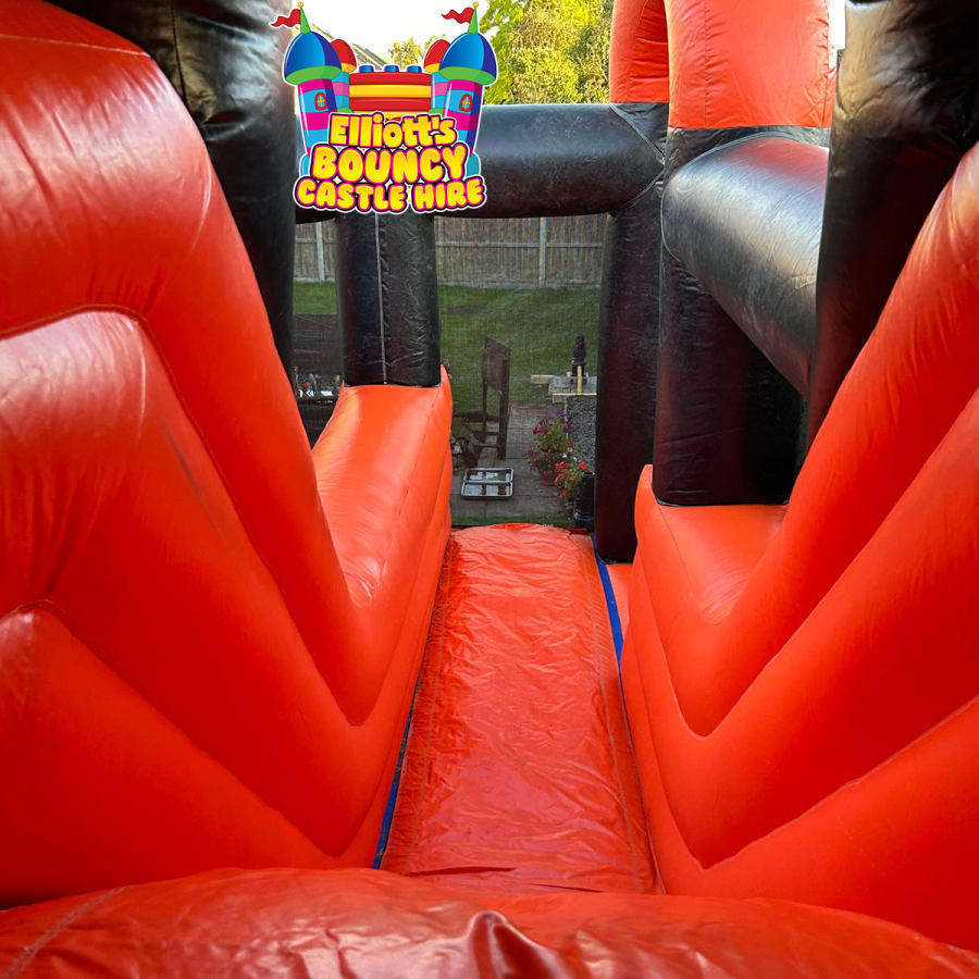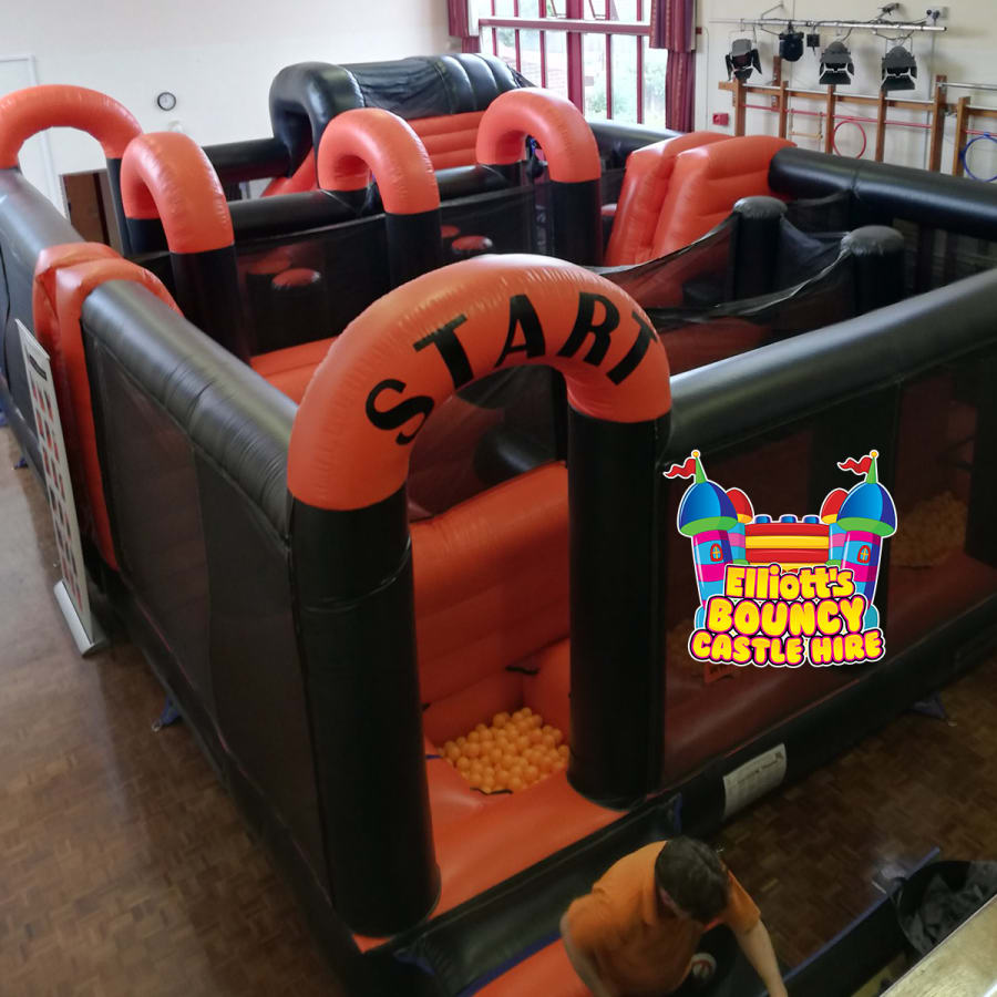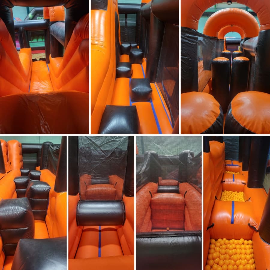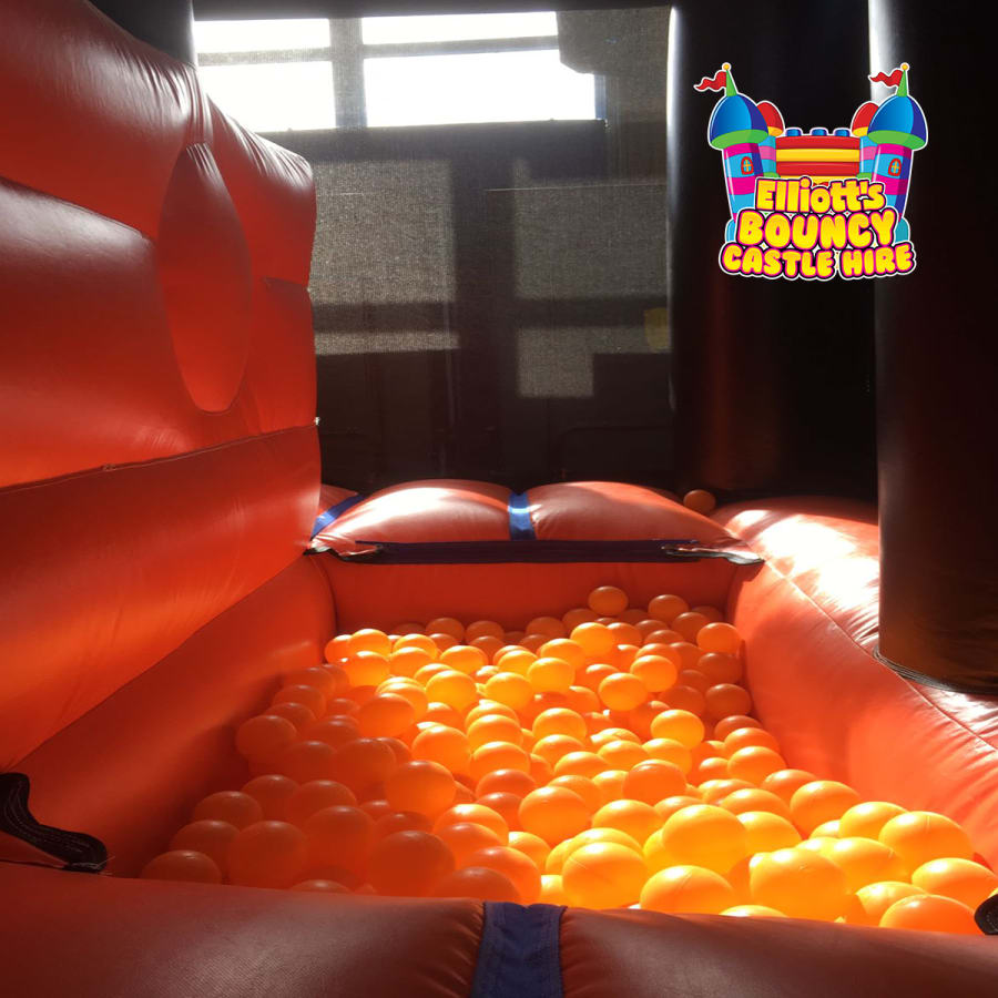 It's a whopper of an inflatable and includes so many different features that it is difficult to choose the first one to describe - It's essentially it's own entire play centre in one mega unit; This inflatable air-park is filled to the brim with exciting activities! Internal ball pools, obstables, climbing wall, steep slide, stepping stones, crawl spaces and hurdles, bish-bash pillars and barriers!