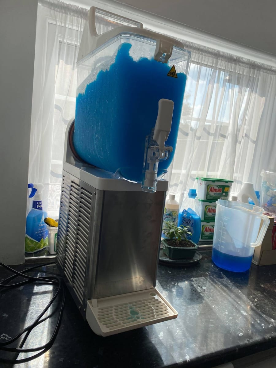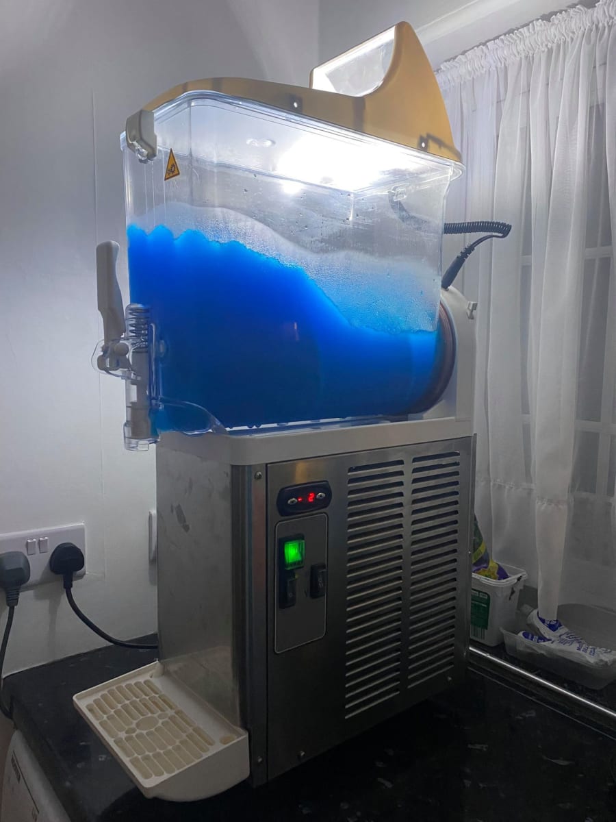 We set the machine up for you, fill up the tank and after 60 minutes of freezing, the slush is ready for you to serve yourselves. No need to press any buttons or any hard operation, just pull the lever! Many companies will state shorter freezing times, but this is quite miss-leading. A slush machine will only freeze in less than 50 minutes if it is in lab conditions: Inside, under room temperature, brand new machine just un-wrapped and the mixture has been pre-cooled. Even then, it won't be completely "slushed", more of a gloopy freeze... We prefer to provide honest freezing times rather than deliver an under-whelming experience based on over promises that can never be achieved. - Our machines will freeze in 60 minutes. - Our machines are serviced every 6 months and have the greatest chance of freezing quickly because we take such good care of them; We just prefer not to misslead people and claim unachievable times.