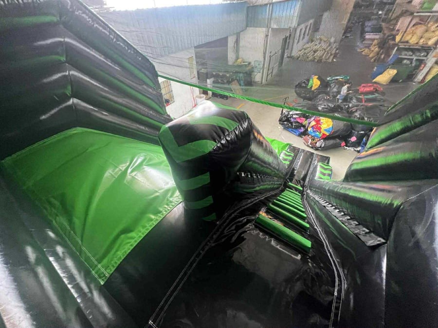 The platform itself has an inflatable wall at the rear as well as fitted netted cover. This means that light is able to pass in at the top, making it not so dark and scary for younger children, but also impossible for them to climb over the back wall or endanger themselves by trying to climb or access outside of the inflatable. In short, the top area is contained and designed to be the safest possible option. - In fact, we do not have any slides at all that have open tops for this very reason.
