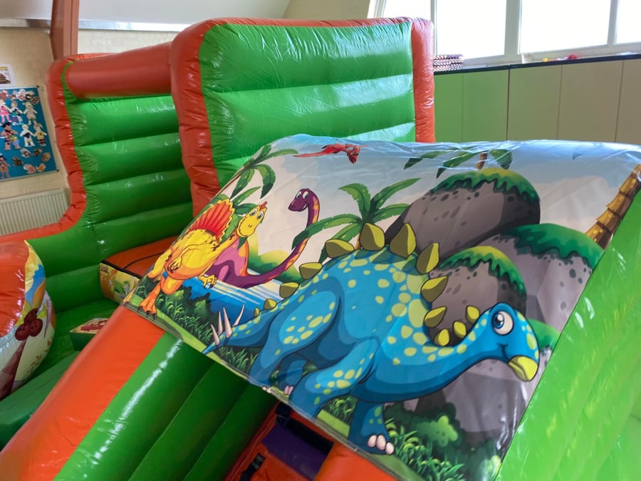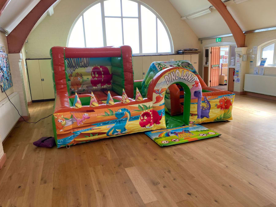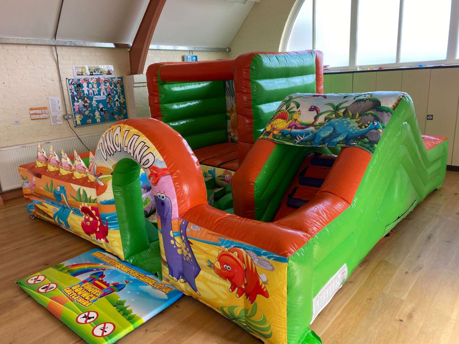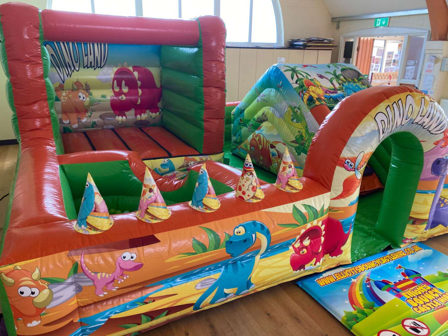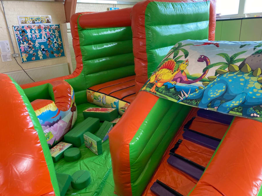 This is a great hire item that includes everything you need! It has it's own bouncy castle, slide and ball pool area! We also include a 17 piece dinosaur soft play set inside the play park so it really is a self contained party in one single piece!