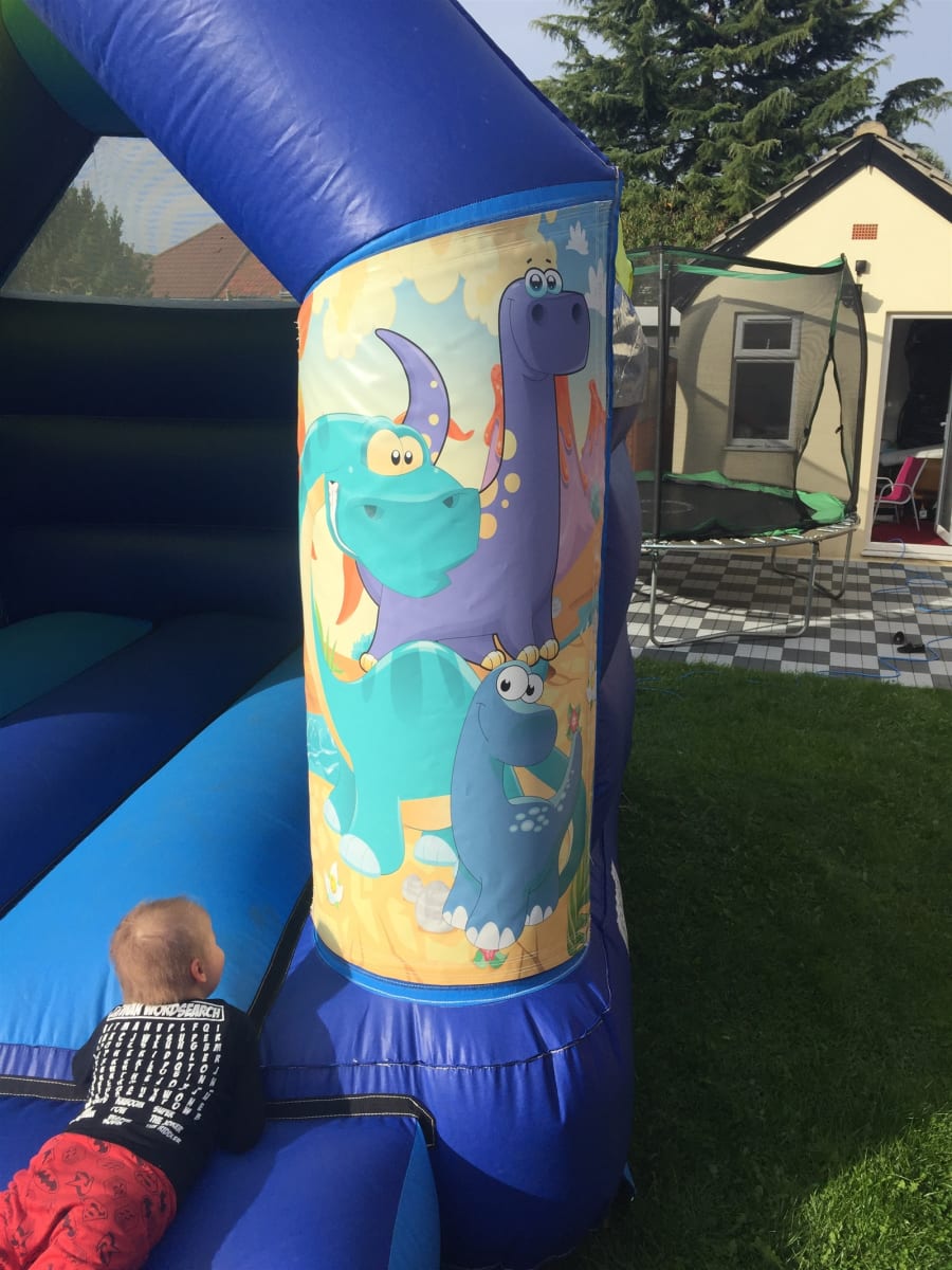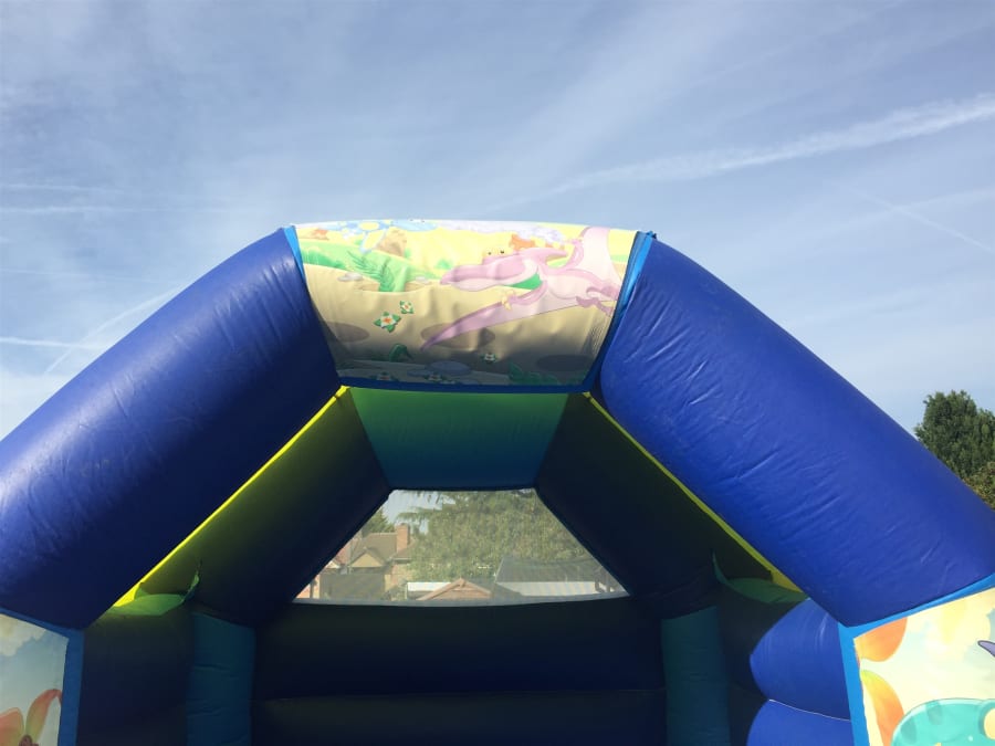 Here are some nice pictures of two brand new themes we're now offering! Our Jungle theme bouncy castle hire and our dinosaur theme bouncy castle hire. Really detailed artwork and these photos go some way to show that!