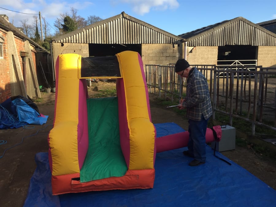 Here are a few photos we took of just some of our inflatables going through their annual test. It was a cold day, full of hard work. However, the these photos should provide some peace of mind and assure our customers that we don't just talk about safety, paying it lip service, we actually believe in it and do what we say.