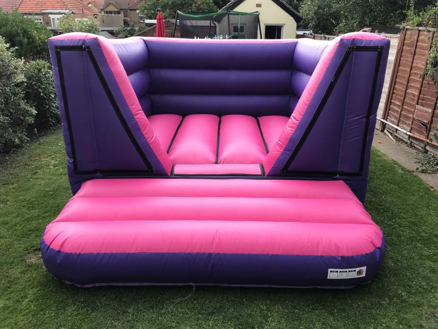 We have just about every shape and size available, but what we really want to add was a super low-height offering. That's exactly what these bouncy castles offer. Not only that, but we wanted to make sure we had a girly one. We already had a low height h-frame available in blue, but was lacking a pink one. These two castles break from the traditional "A-frame" and "H-frame" design with turrets, and instead are called a "V-front" (for obvious reasons). The fact they do not have protruding turrets means that shave off a lot of height (but still have good, safe high walls), making them only 6.5 foot tall!