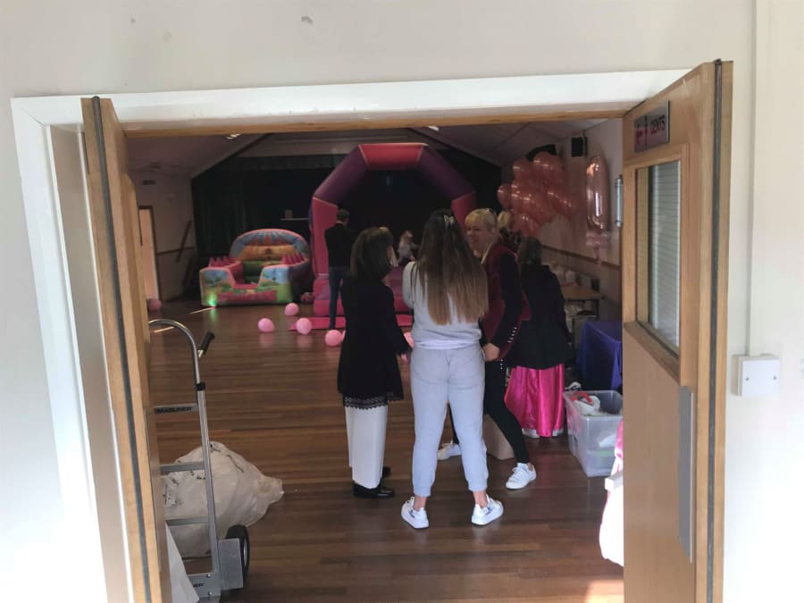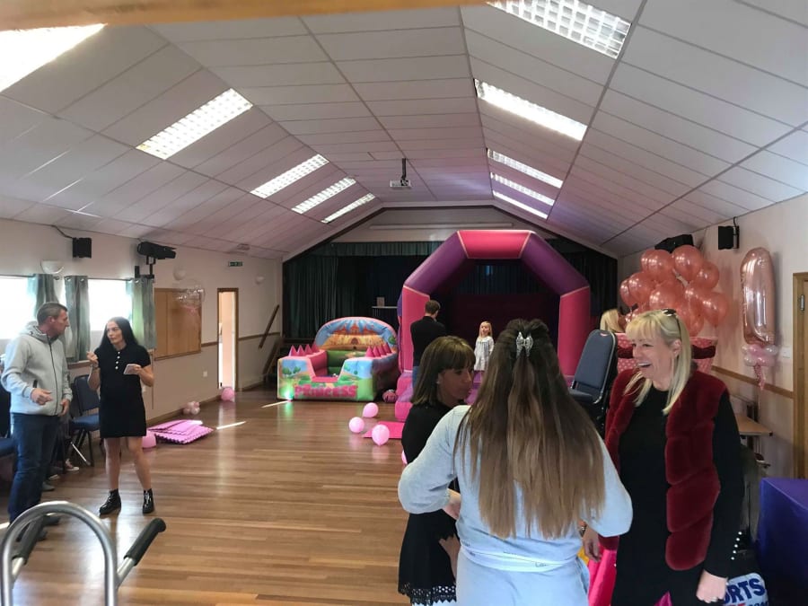 As you can see from the photos, you can very comfortably fit a bouncy castle inside (and more!). You couldn't fit our super slide or fun-runs inside this hall, but it would fit most other bouncy castles and soft play! The serving hatch has a worktop infront on it in the kitchen so also makes an ideal place to put a slush machine, too!
