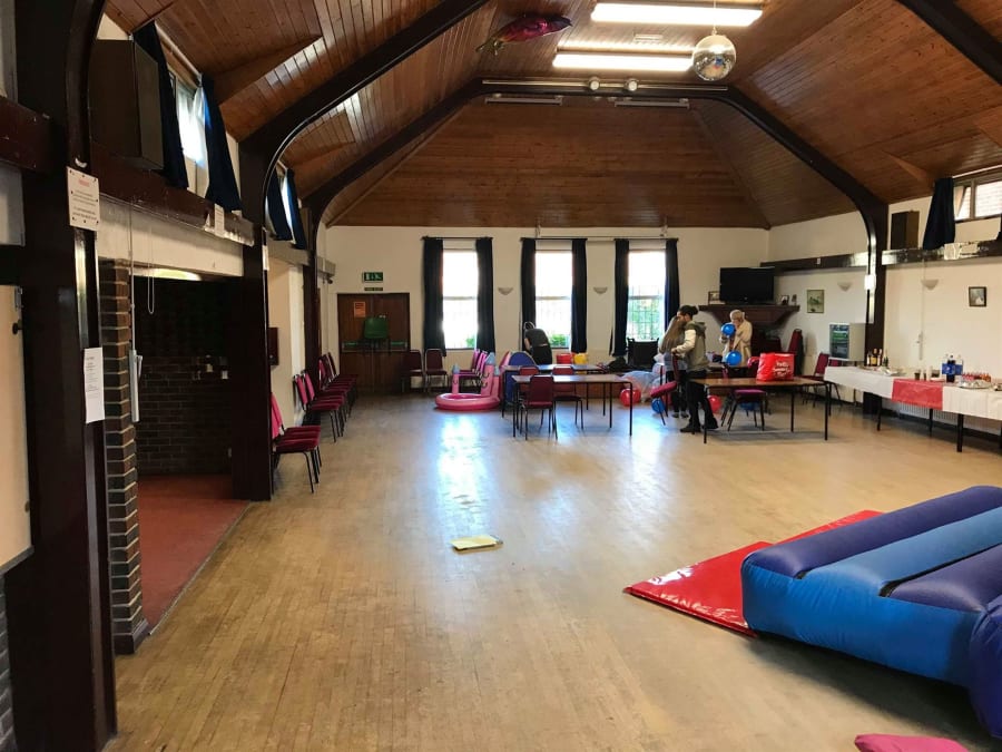 The kitchen is very clean with great facilities (plus a serving hatch) and the hall itself is very clean and a great size with more than enoughroom for pretty much any inflatable we offer. The floor is also suitable for didi-cars and the serving hatch makes for a great spot for a slush machine!