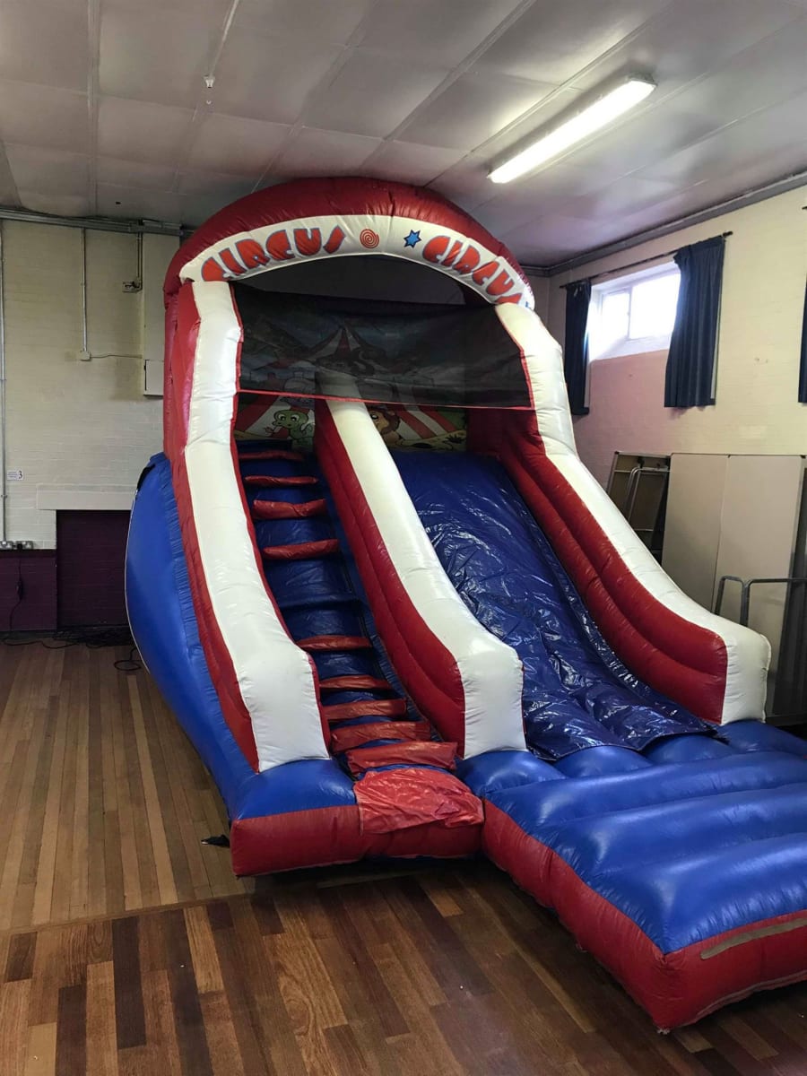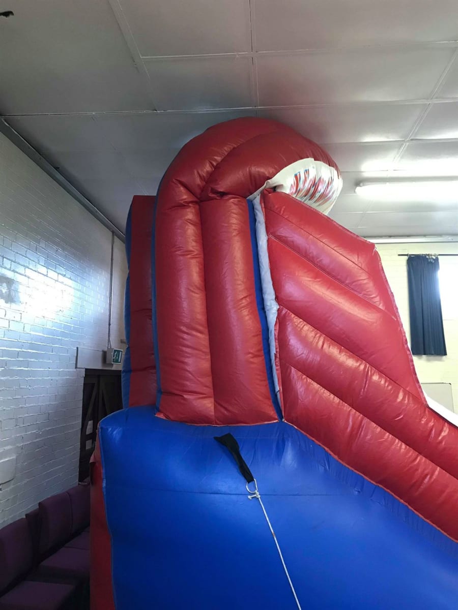 Originally they had our super slide booked in and it was a rare hall that we had never been to before. They had a mixup witht he hall height and believed it would fit. The photos below show that sadly it was about a foot too short. We tried putting it up but it just wasn't safe; We couldn't in good conscience leave it up (it would quite possibly bring the entire ceiling down as it was polystyrene suspended tiles).