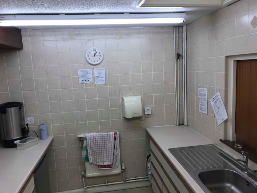 You would be forgiven for believing that the kitchen is small. In truth the first kitchen you see is really just a preparation room and connects the serving hatch (we love a serving hatch) to the main hall. In this room you have a tea urn, fridge, work top space and some other small amenities. However, the main kitchen is behind this room and has an oven and full amenities. We've seen people totally over-look this room and not realise until the end, so it's worth knowing about!