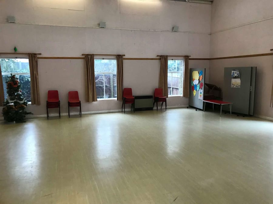 The hall is our most favourite in Bexley. It's off the main road and opposite the church. There's a builders merchant very close by as a neighbour but they're extremely well hidden and no fuss at all. In fact, they're actually just for sand and ballast really and you do not have heavy traffic and commercial vehichles constantly up and down, it's very domestic.