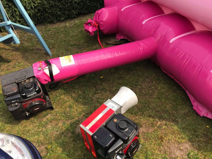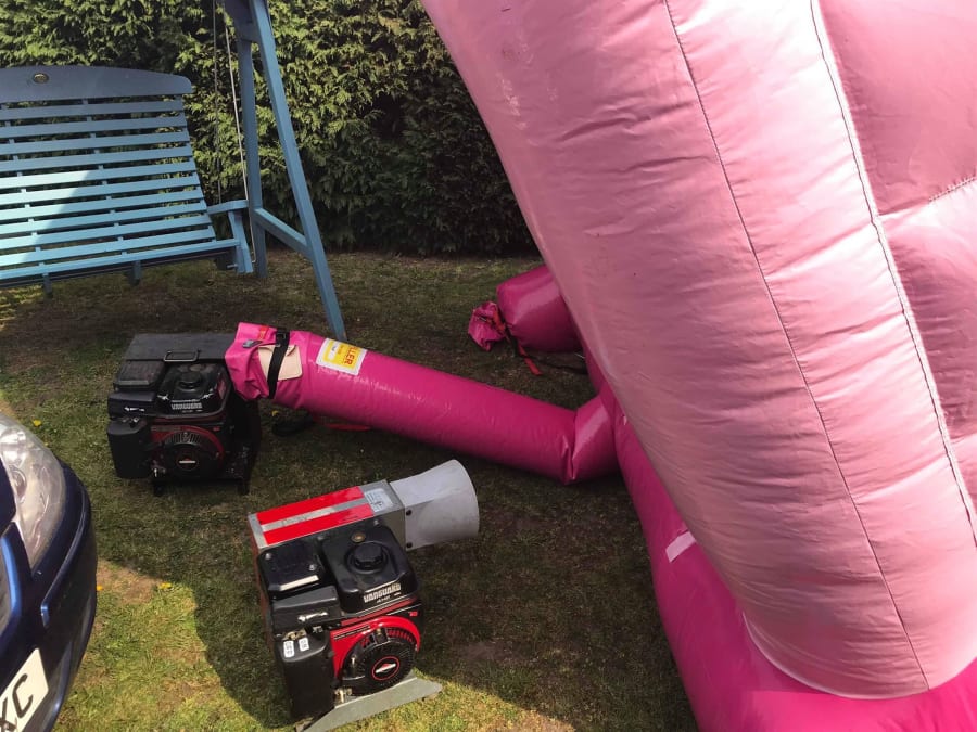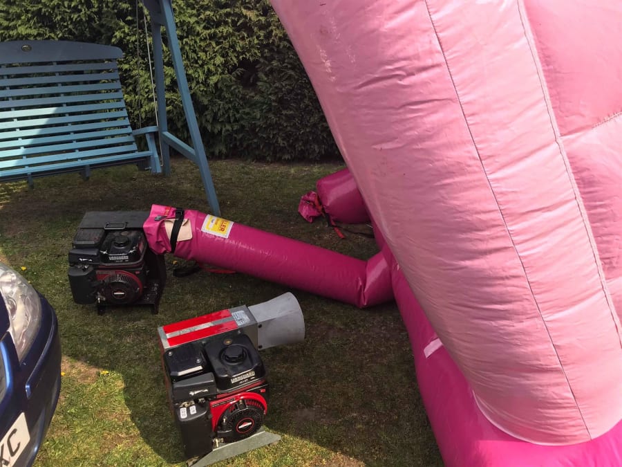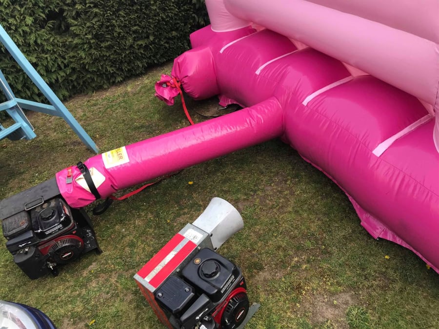 The job of cleaning castles never ends. We recently wrote a post about cleaning castles and what we do, so this is no real update. However, while cleaning our popular pink princess bouncy castle we managed to kill two birds with one stone! We needed to check some of our petrol blowers where in tip-top condition after resting over the winter period.