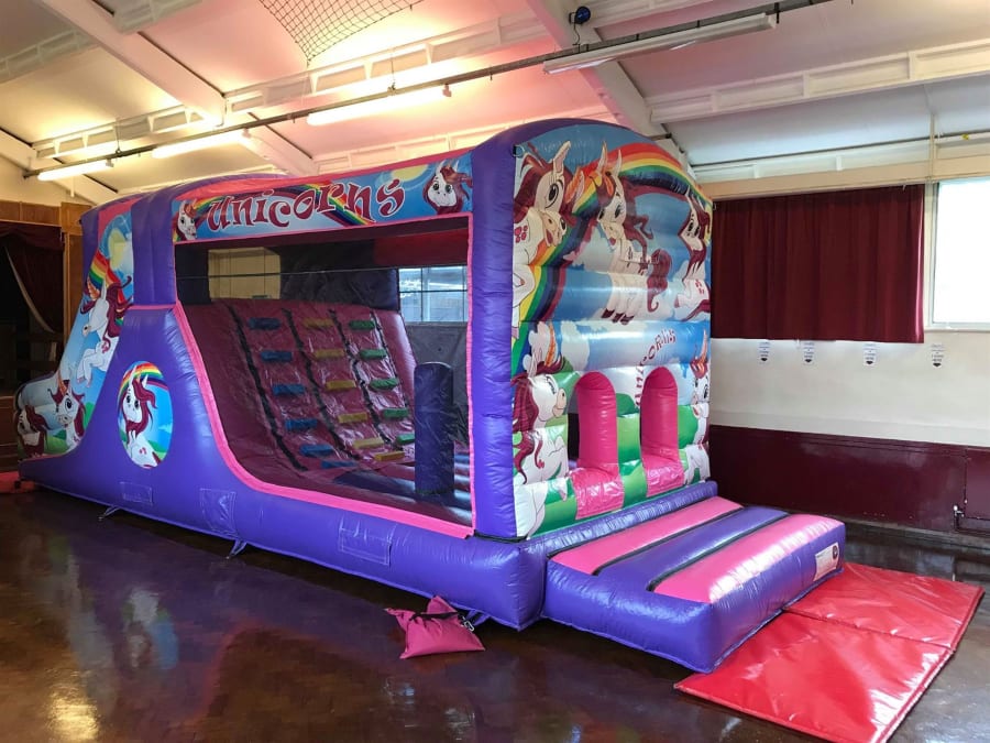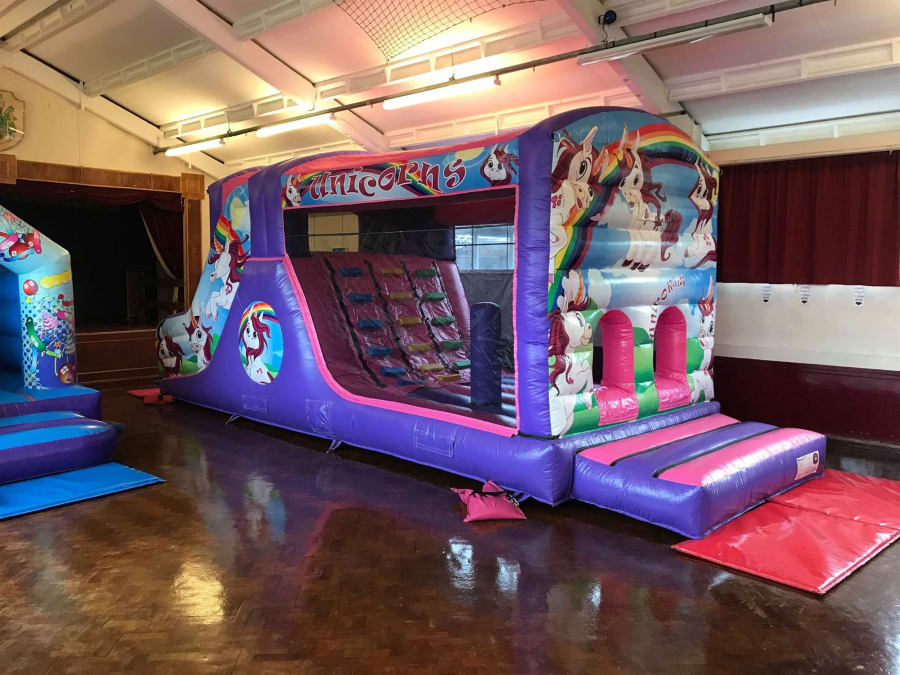 We was recently asked to provide our Unicorn Fun Run and Party Themed Front Slide Combo Bouncy Castle to a returning customer of 7 years! They booked Falconwood Community Centre, a very familar hall to them (and us) and they put on a lovely party for their daughter, including a recommended facepainter, party food and two really cool inflatables for their 8 year old daughter and her little sister.