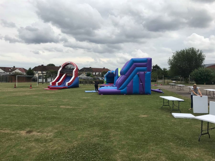 We was very proud to be charged with providing the inflatables to Eastcote Primary School's fun day. We was able to offer them a great competative deal by making use of our ultra long leads; This seems like a weird thing to mention, but standard bouncy castle leads can only go 25 metres due to the commercial blowers power draw on them, but we have special leads that are incredibly thick and we can double that length to 50 metres, allowing us to run off electrical points rather than use generators in a lot of circumstances where other companies just can't offer that.