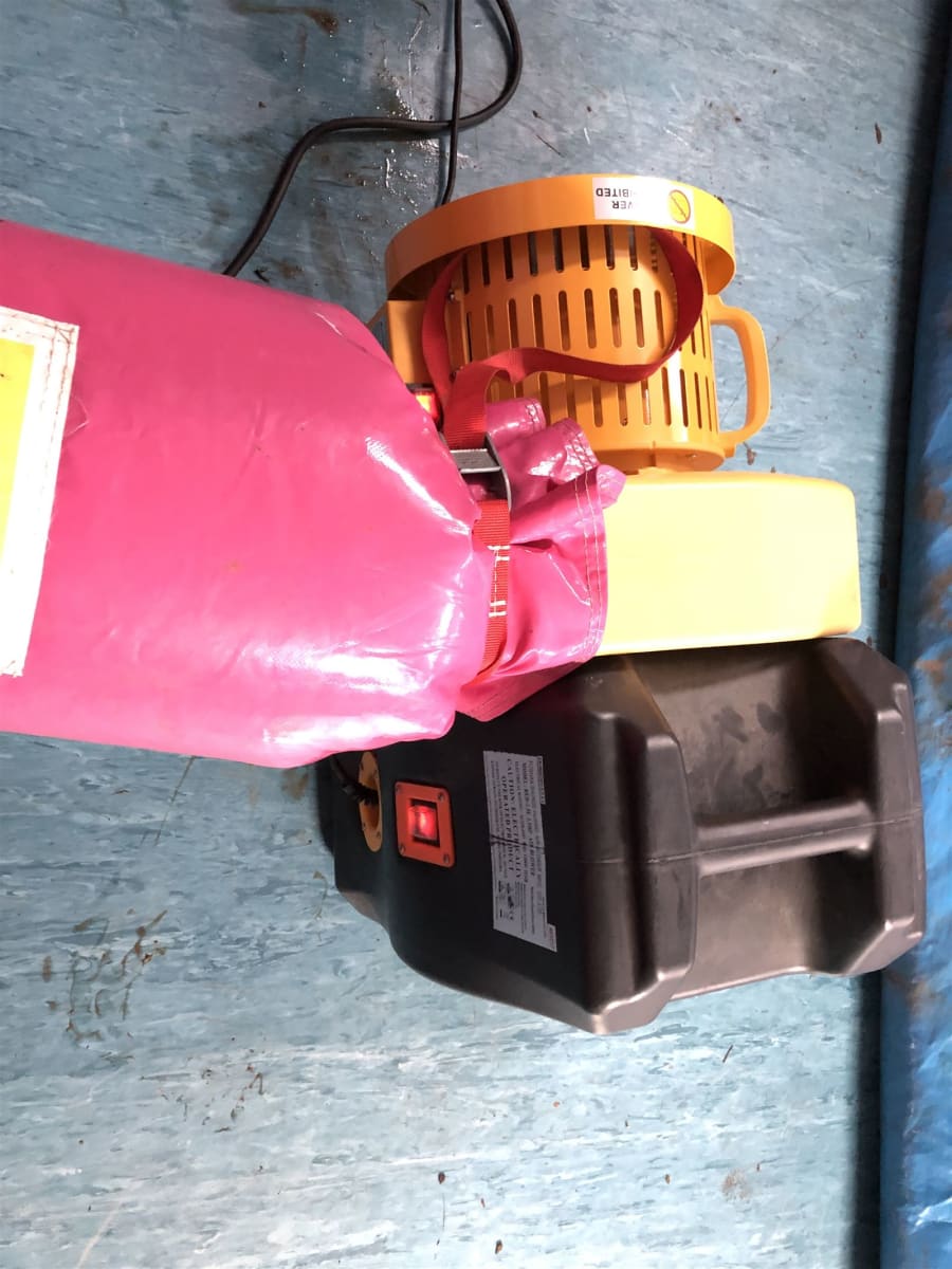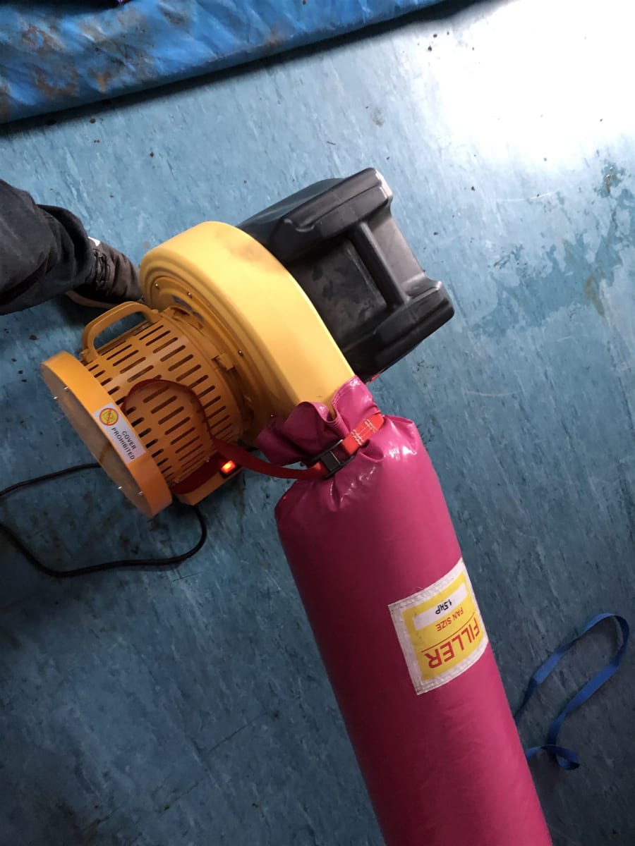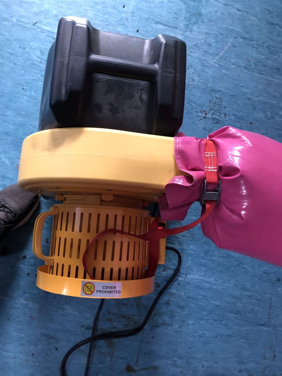 The outside of the bouncy castles dry-off pretty quickly in most cases, especially with some towel drying. The inside however is another matter and can be a real challanege, causing issues if left un-checked. Fortunately we have some specialist drying equipment for the inside of bouncy castles, with a heater fan that's no good for normal use and inflatation, but designed to push warm air inside the inflatable and dry it out from the inside out!