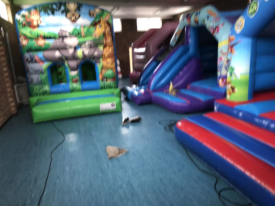 The good news is that the events where a success despite the weather, but the result was some truly soaked inflatables. With the weather continuing to be wet and cold, we hired a hall in Bexleyheath whom we have an excellent relationship with and spen the day cleanng the bouncy castles, but also drying them out (which actually took longer).