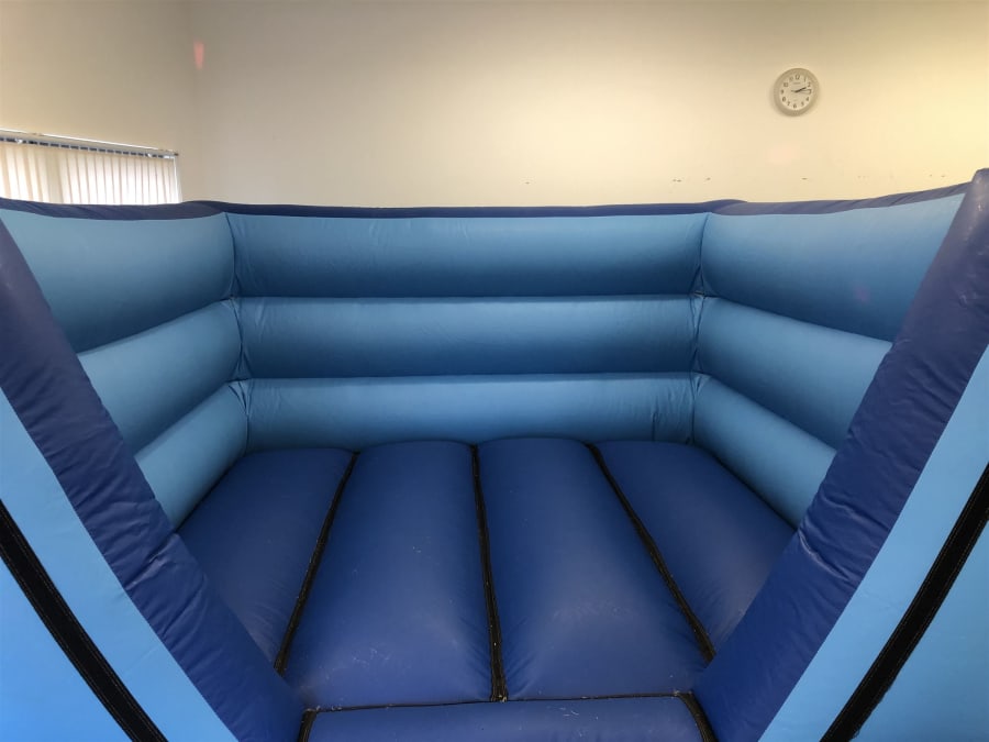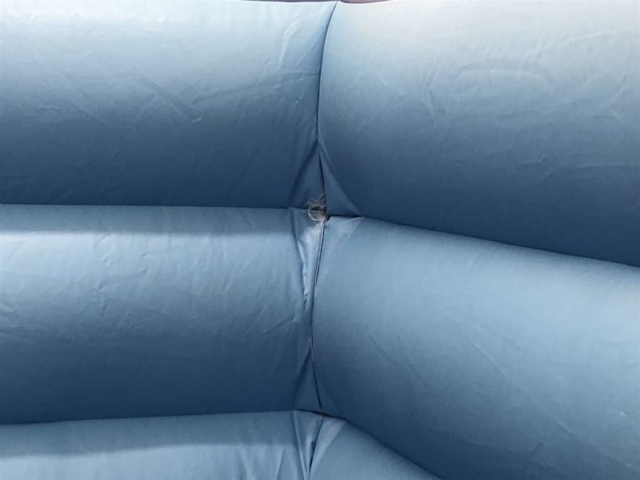 While packaging away our blue low-height v-front bouncy castle (aptly named due to the front opening looking somewhat like a "V") we noticed some wear. This wear over some time may have potentially led to a small accident if left un-checked.