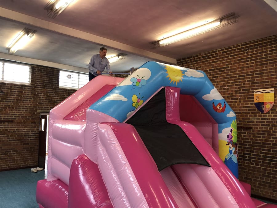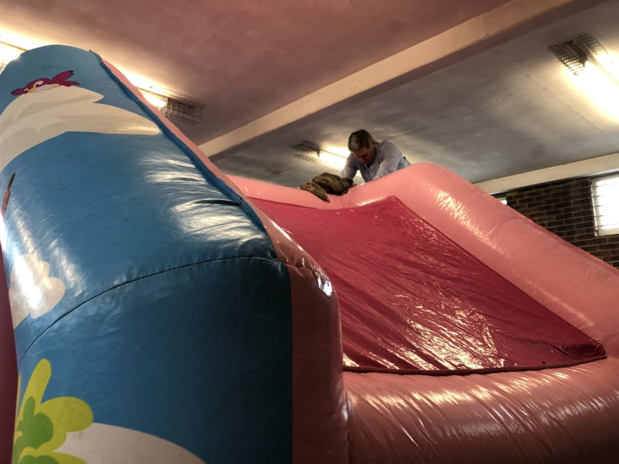 For us though, it's just a place where nasties can lurk. Left unchecked it can become a problem, so we regulary clean our bouncy castles from top to bottom. It may look a bit weird, but having the bouncy castle inflated means we really get to visually inspect it and get in places you couldn't whilst it was deflated and down. We regulary hire a hall in Bexleyheath for our cleaning and drying, regular readers will probably recognise it from other posts. If you need to hire a hall in Bexleyheath, we're happy to provide the details.