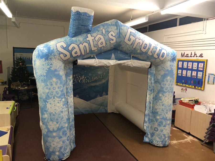 It was a pleasure today helping to set-up our inflatable christmas grotto for a local school. We appreciate that preparing for a christmas fete isn't always easy and can be quite stressful. This particular school was setting up the night before as they was worried they wouldn't have enough time the folowing day to complete everything. We helped out by delivering the grotto this evening a day early so that they could decorate around it and have everything set up the night before their big day.
