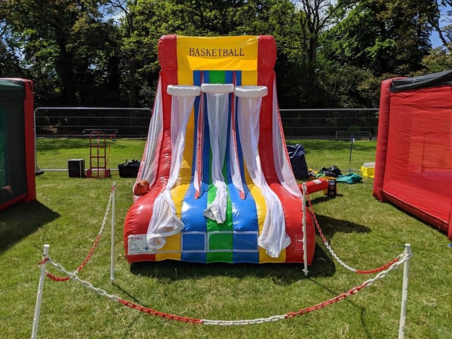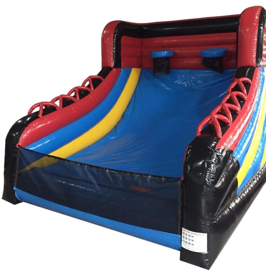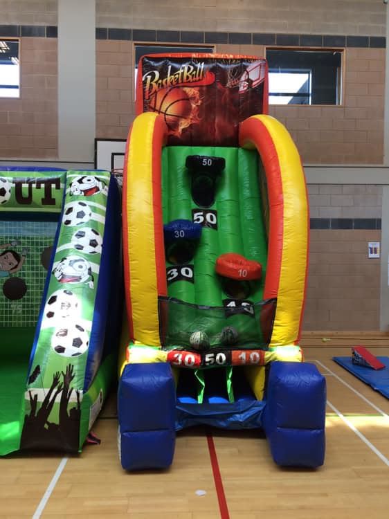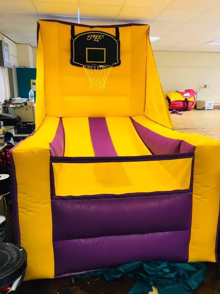 We're very keen on an inflatable baskbet ball game and have seen several versions. We fell in-love with a very cool looking one that has multiple hoops; It really embraces what we're looking for, offering games and fun to the concept; Multiple scoring and a competative twist. However, the major draw back to this is the height of it. It's very tall, too tall in fact for many community centres, needing either a high church hall or a sports hall to fit in. Not a problem for outside, but these types of games are often hired inside. Sadly, it really rules out this version.
