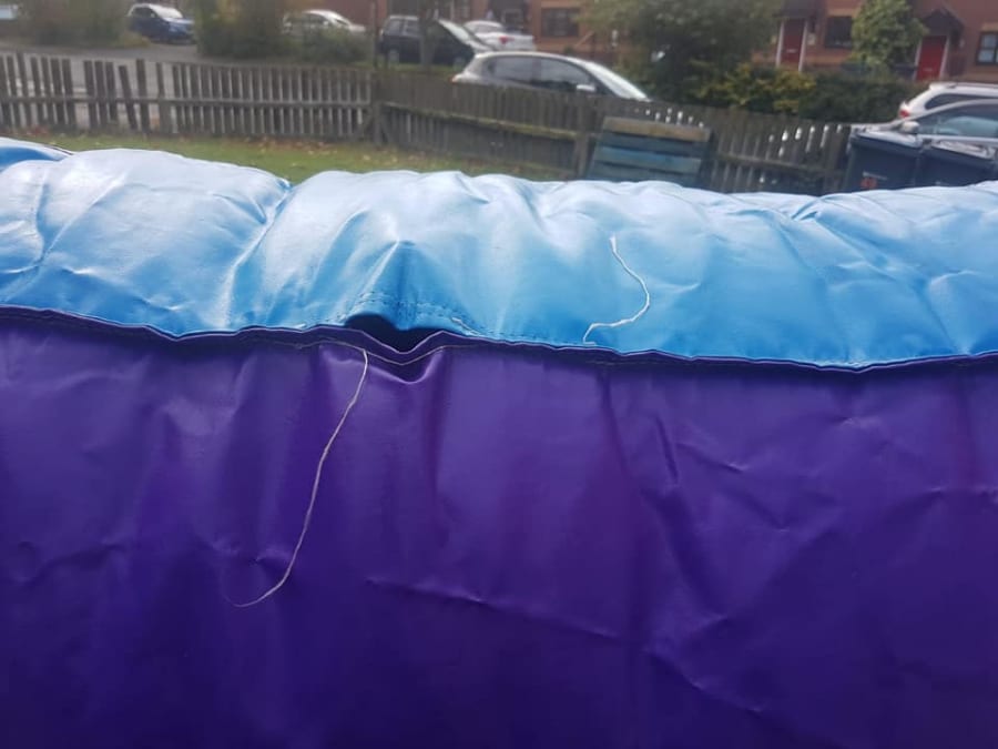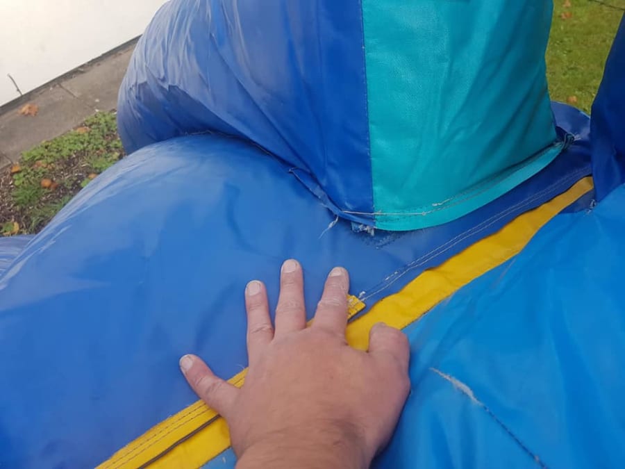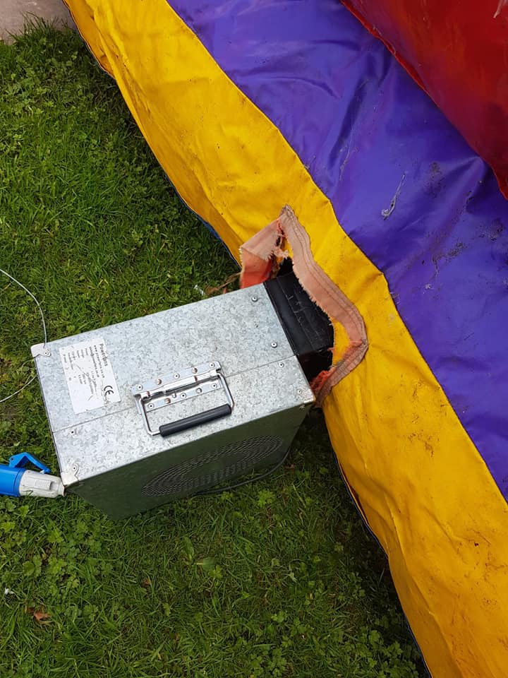 Below are some very recent pictures of cheap bouncy castles in circulation. You really don't have to be an expert to see how awful these inflatables are and more importantly, how un-safe they are. These are the sorts of shoddy set-ups and equipment comes with "cheap".
