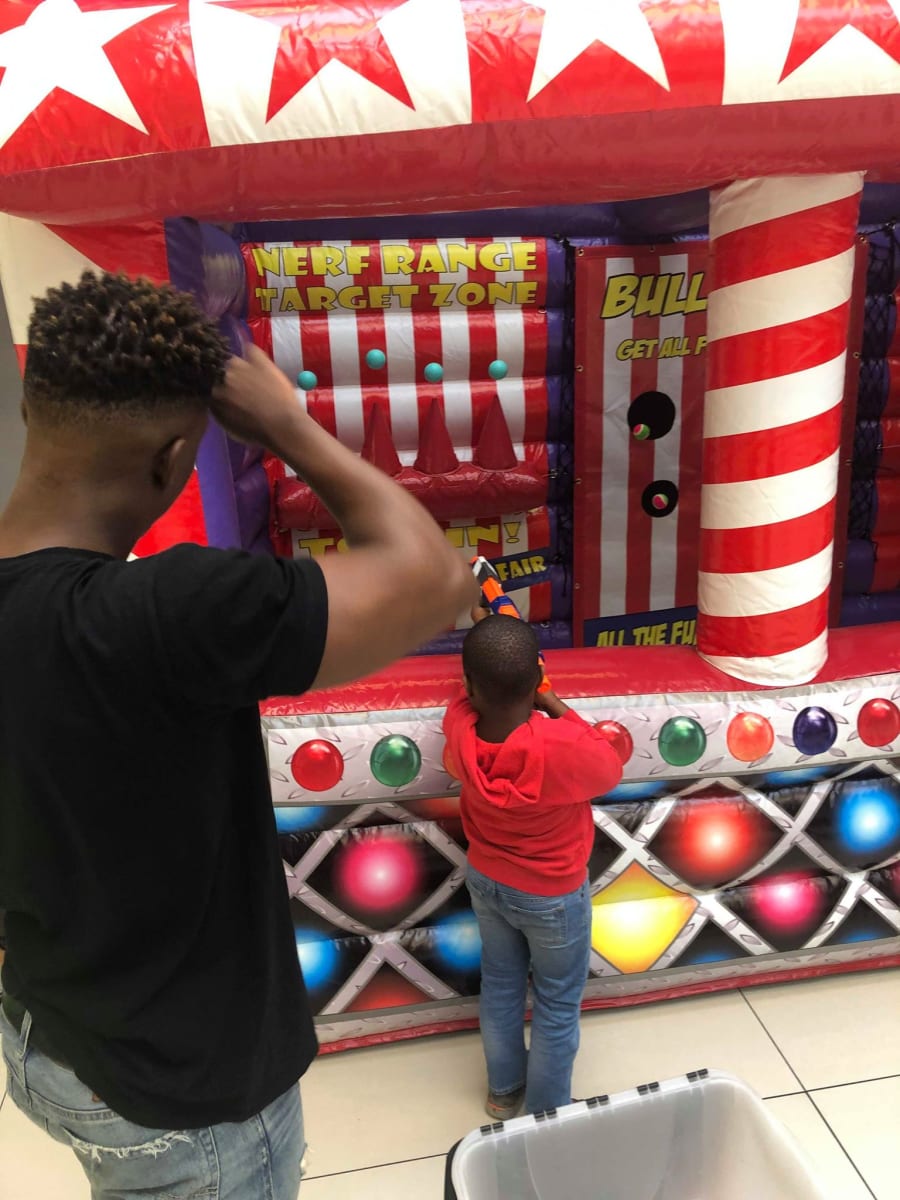 The entire theme of the party was Jungle and games, so it fitted extremely well. We showed the designated responsible adult how to use the games (which are pretty self-explanatory) and provided some safety instructions regarding the goggles and nerf guns especially. As we was leaving the men who was originally helping to set-up the party had left all the women to do the work and was already competing with eachother on the games!