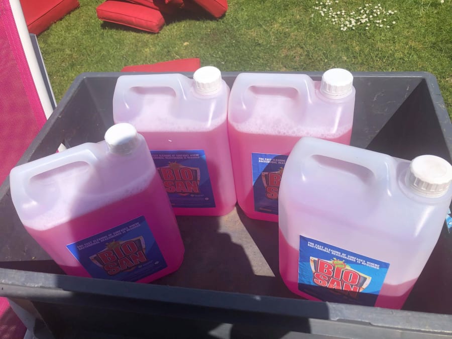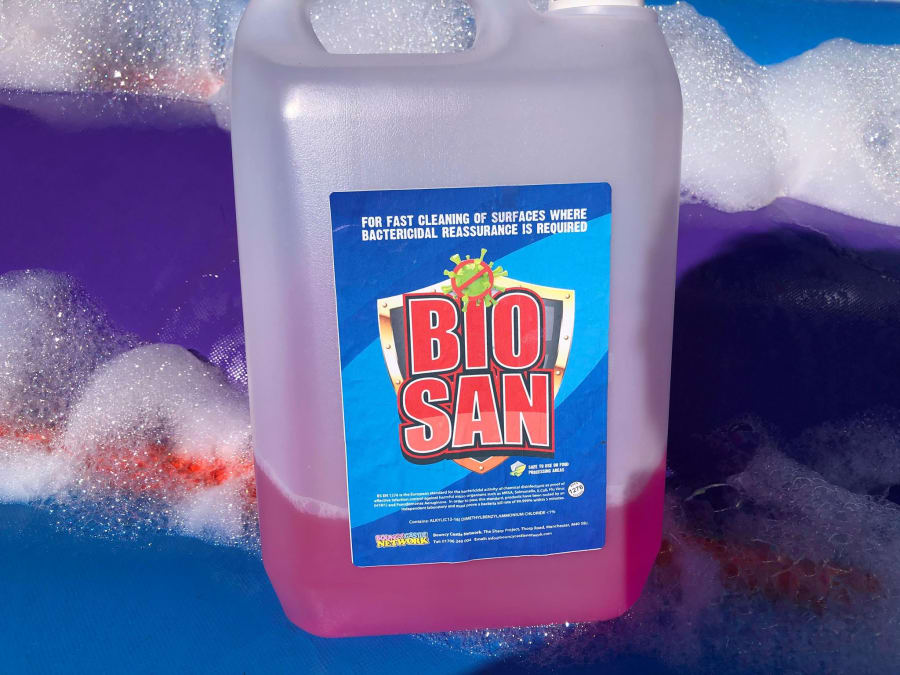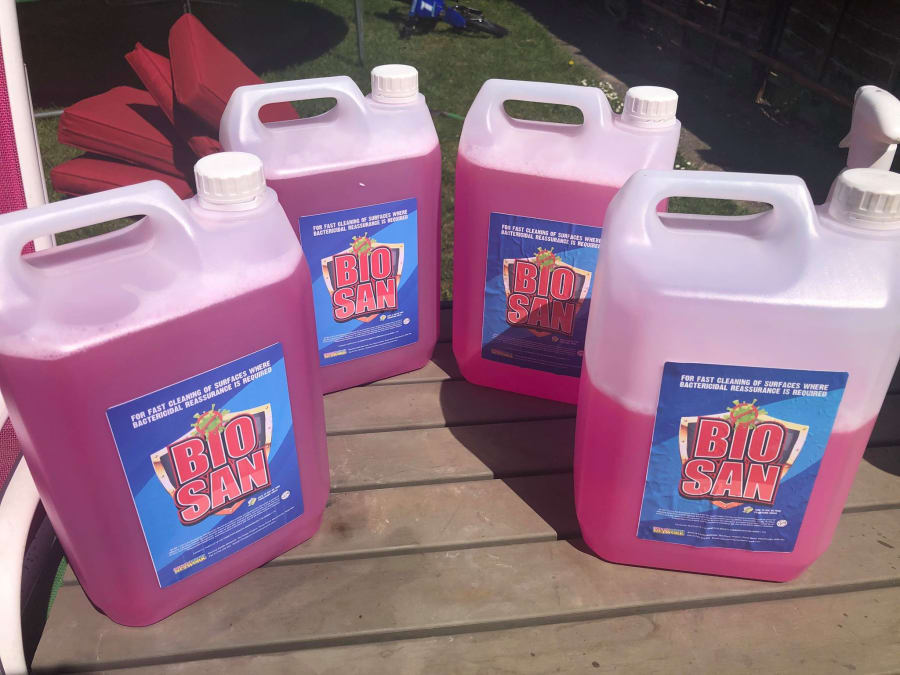 We are taking lots of other measures to ensure that we're covid secure, but as an additional step, when we install the equipment int he back garden of the customer, we're spraying the bouncy castle from head to toe in BIO-SAN again, providing an additional layer of reassurance.