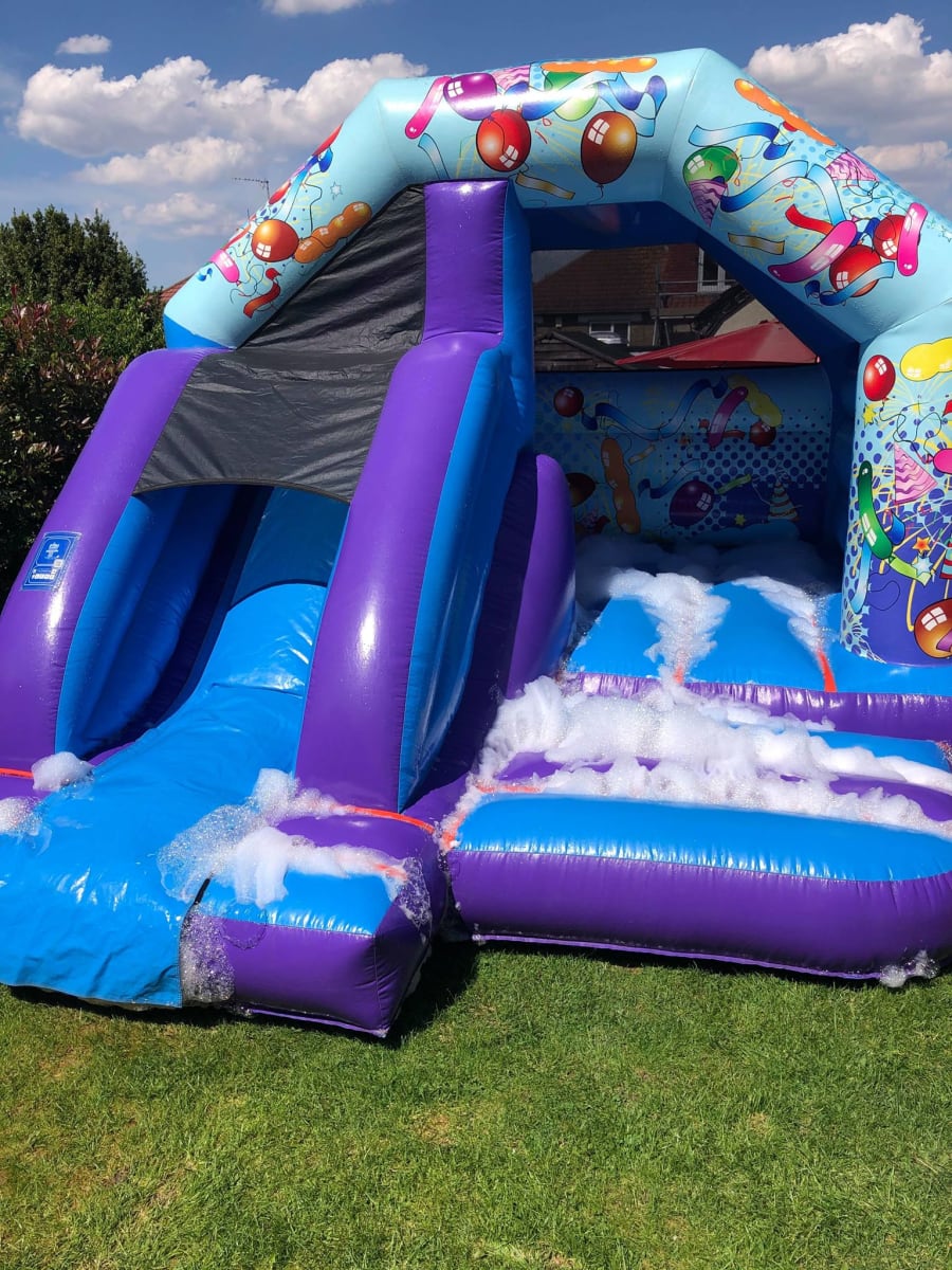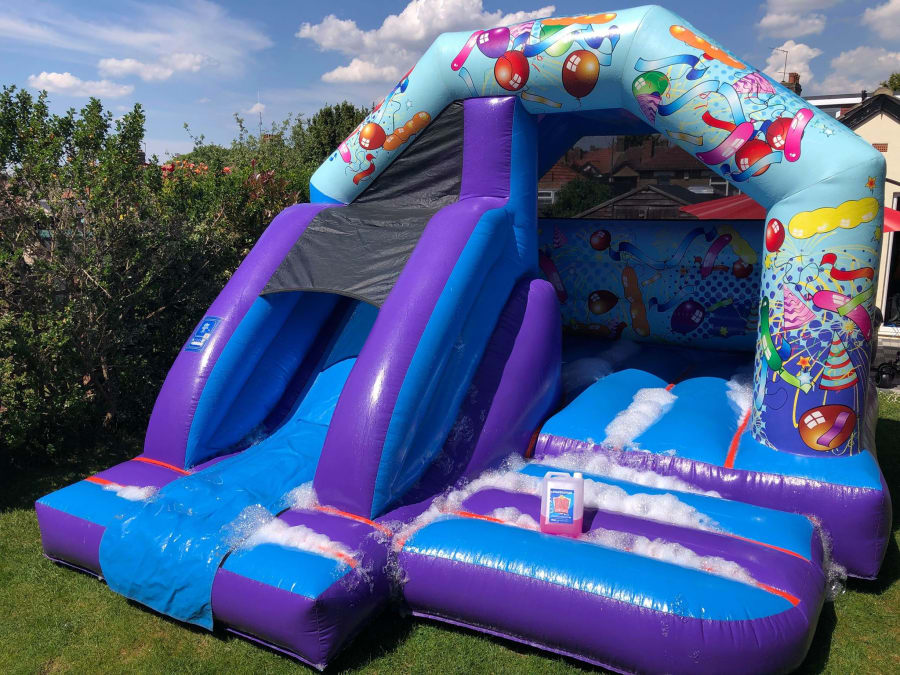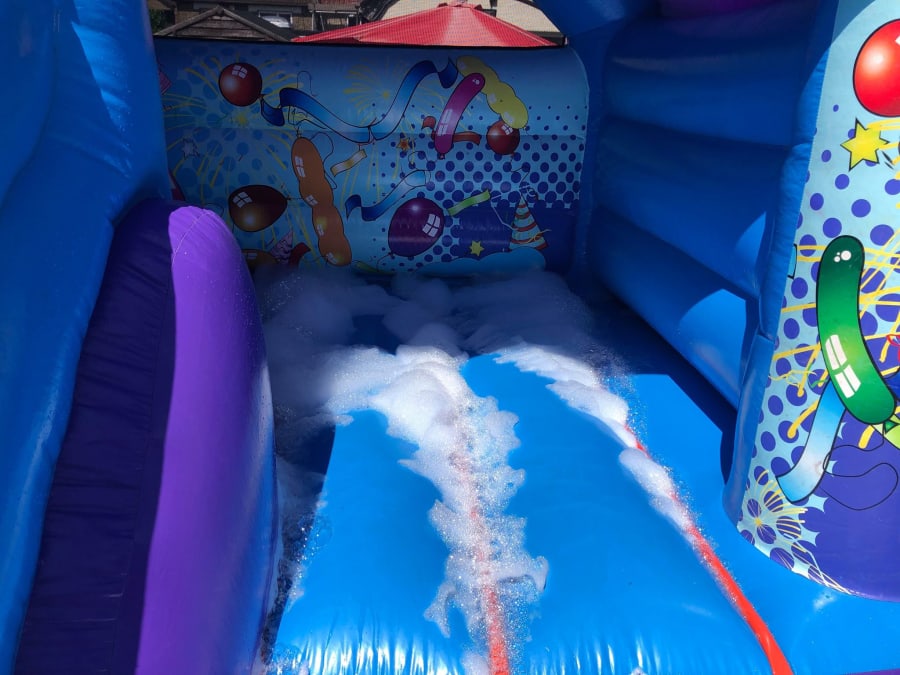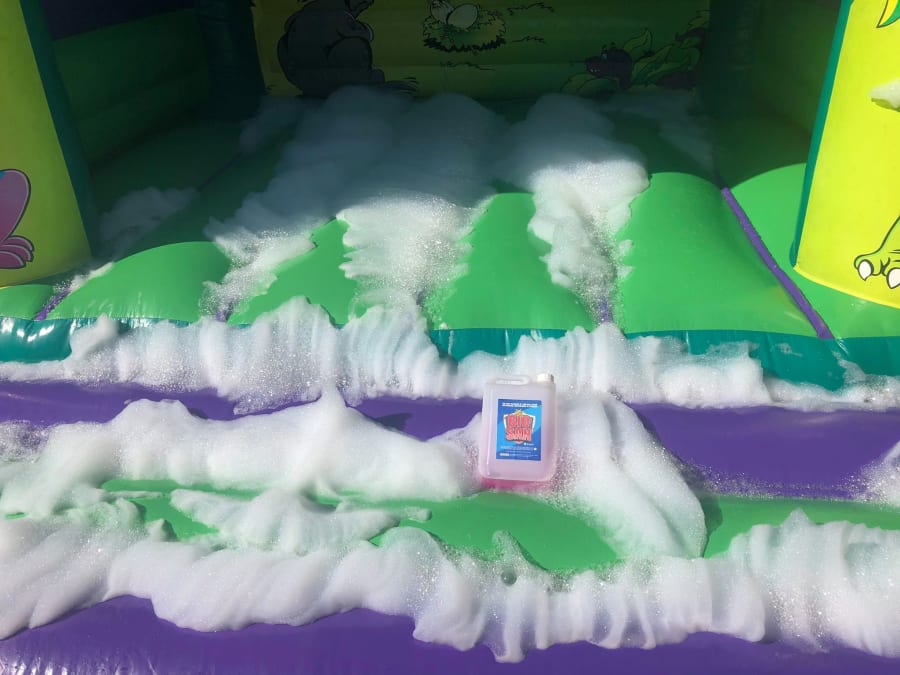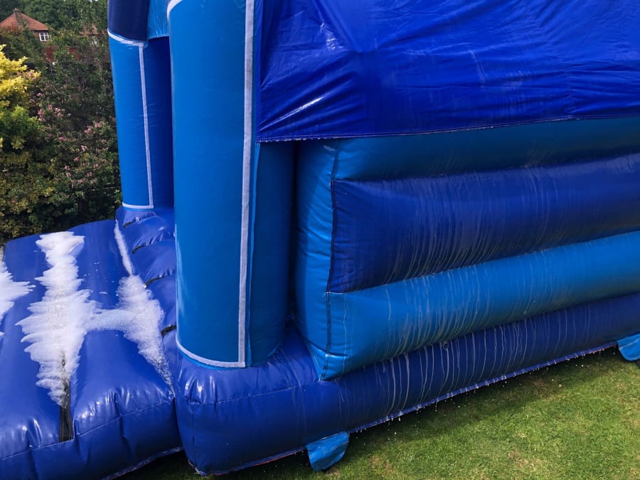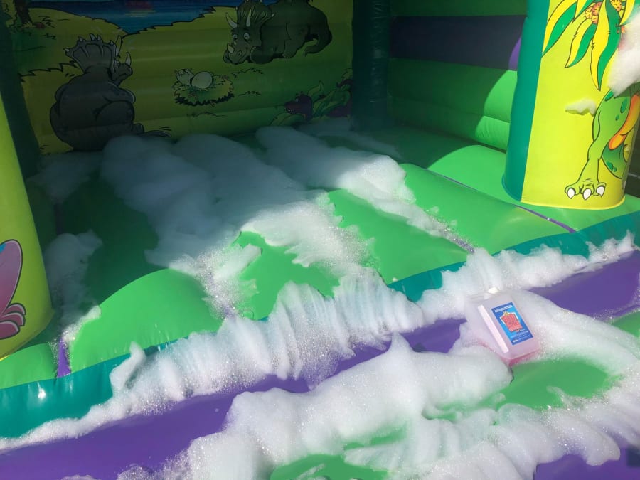 All equipment is washed before it is hired, and by washed we mean that it is scrubbed clean using anti-bacterial cleaning products (specifically BIO-SAN, a new to market specialist bouncy castle cleaner made to kill bacterial with a success rate of 99.9999% within 5 minutes of contact). It's then hosed off and given a soap foam wash and hosed off again. Finally, it is sprayed with anti-bacterial cleaner using a pressure washer on the mist setting, allowed to sit for 20 minutes and then rinsed off, where is finally allowed to dry.