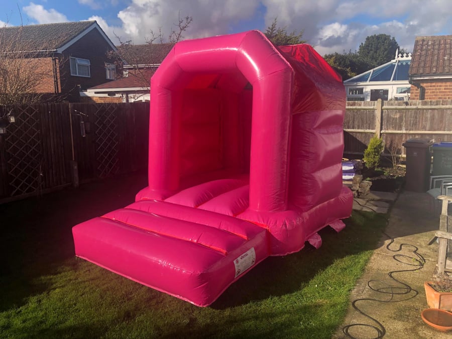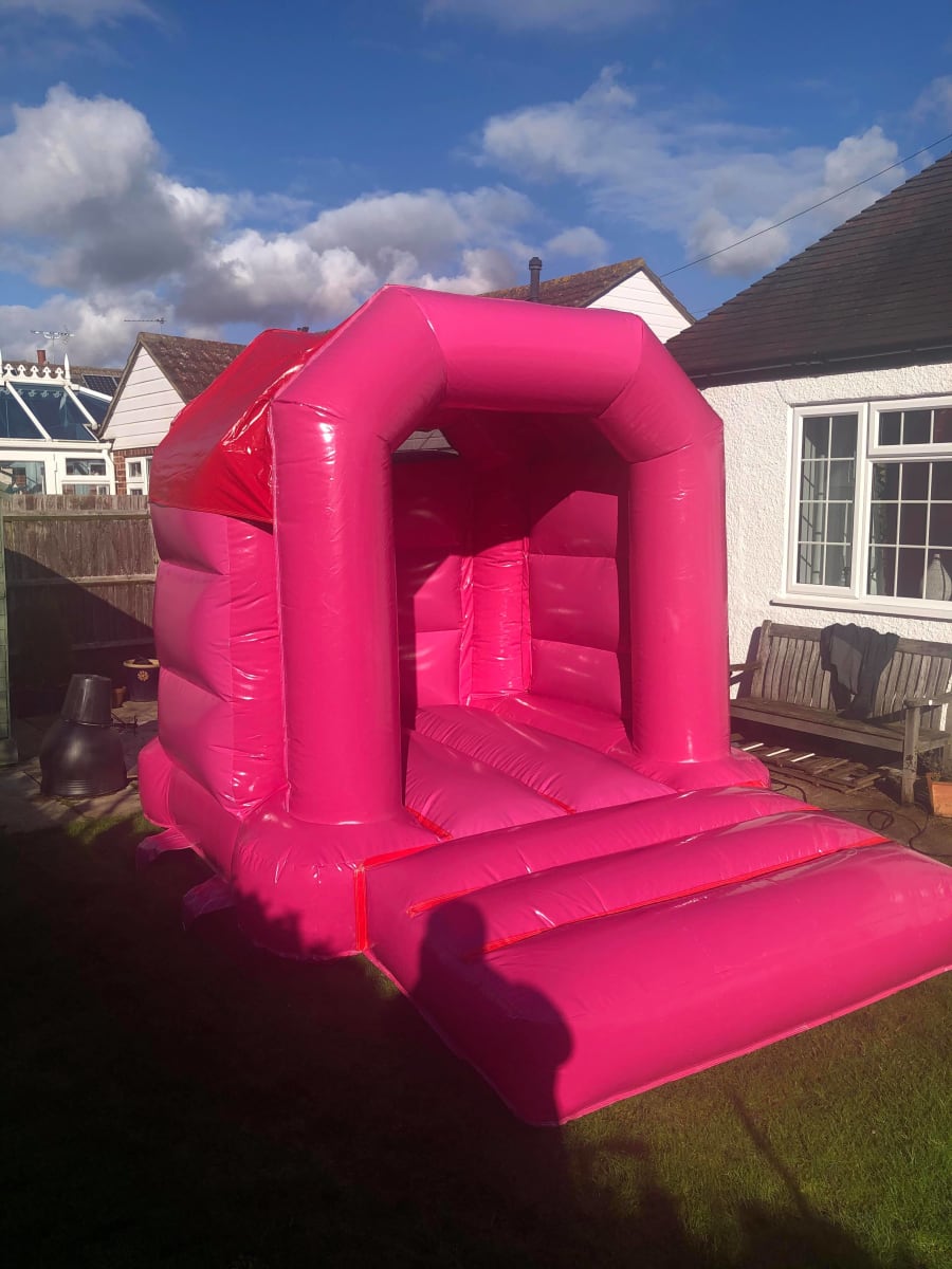 We managed to get some nice photos of our latest slim pink bouncy castle, on display here in Dartford, Kent. We're blown away with how vivd the pink is on and couldn't be happier with the dimensions; At 8 and half foot wide and 11 and half foot long, it's yet another completely bespoke and unique bouncy castle that only we can offer to fit the needs of our customers.