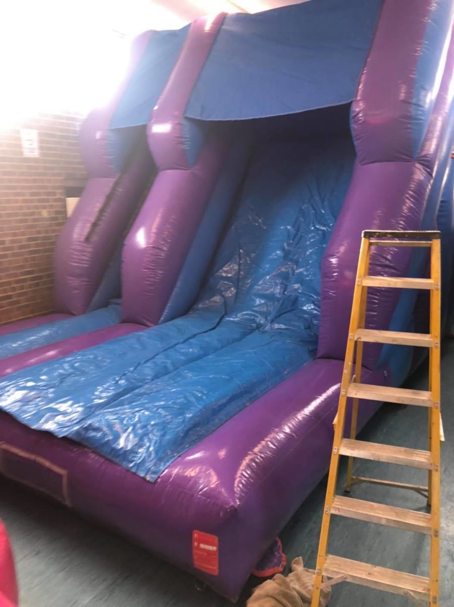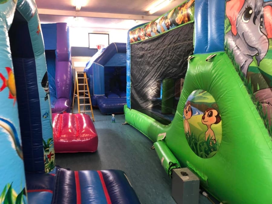 After the inspection each one needs to be packed away and taken back to storage. We're lucky that as we have so many, the inspector agrees to come to our venue instead; We hire a hall and have lots of them inflated at once, allowing the inspector to go round each of them and never really catching a break, as a team we follow them round and pack them away while putting up another one ahead of them, so it's a constant flow. By the end of the day we're all worn out, but it's a commitment to our customers that we will always provide the safest equipment and well worth the very long day's work.