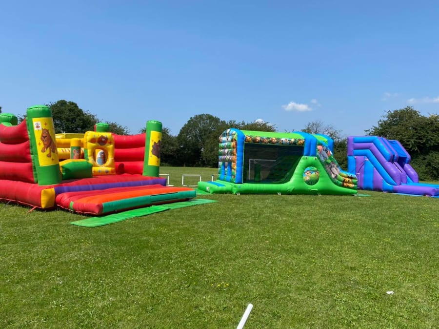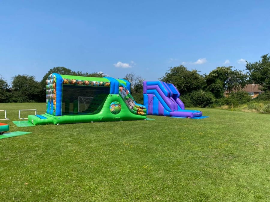 Hillsgrove is a 2 form school, so as it was a single year group (which they was splitting/staggering into their class groups) they didn't need a huge inflatable fete package, but they did want bigger equipment as they didn;t need to cater for younger children and siblings - They wanted the biggest fun they could have on the budget available. We recommended some equipment we felt would cope with the capacity quite well and deliver on the promise.