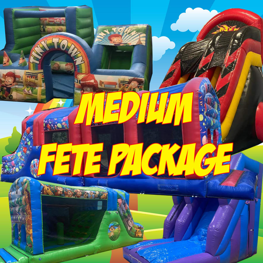 This package is brilliant for school fetes who are looking to provide a great time on a budget. Ideal for when you want to draw crowds to your event and increase gate numbers for your side stalls, barbecues and other attractions. It ensures you have an impressive array of inflatables that are built for capacity; Each inflatable is fun and exciting while entertaining a lot of children. We put these standard packages together based on as much bang for your buck as possible!